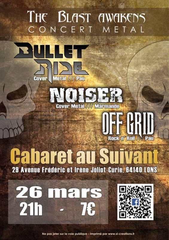 Nous serons en concert au cabaret au Suivant à Lons le 26 mars 2016, en compagnie de Noiser, tout droit venu de Marmande et de Off Grid.